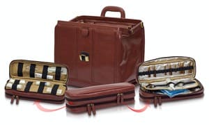 Maletín elegante de diseño tradicional en piel para visitas médicas.