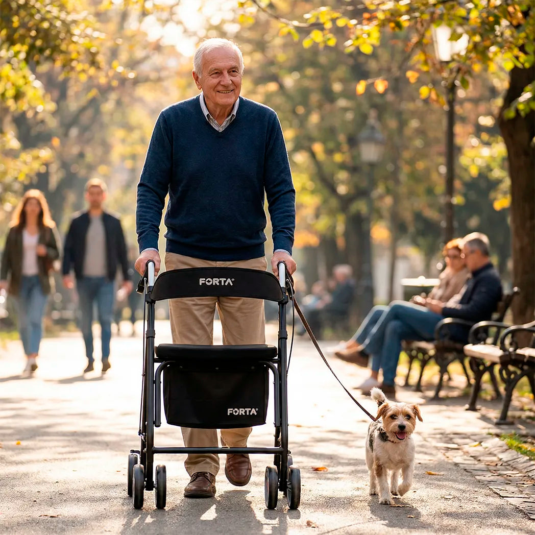 Andador dobrável de alumínio DRAKON 2 com rodas giratórias duplas FORTA